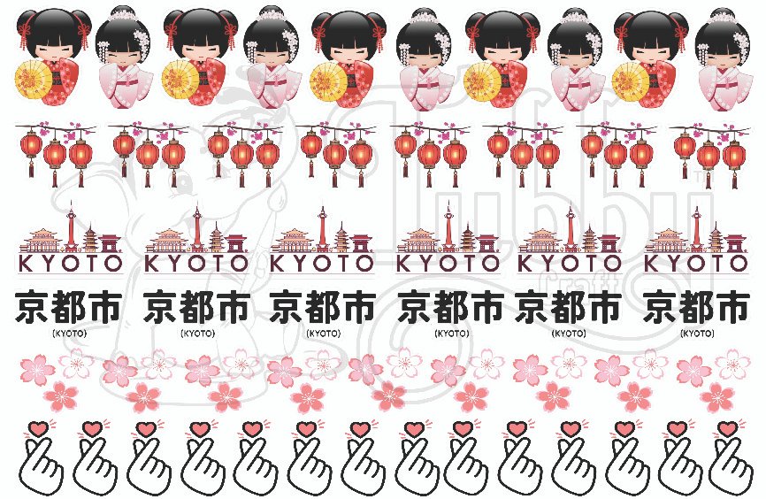 Kyoto Japan Theme UV 3D Sticker Sheet – Cute Japanese Doll, Lantern & Sakura Waterproof Stickers